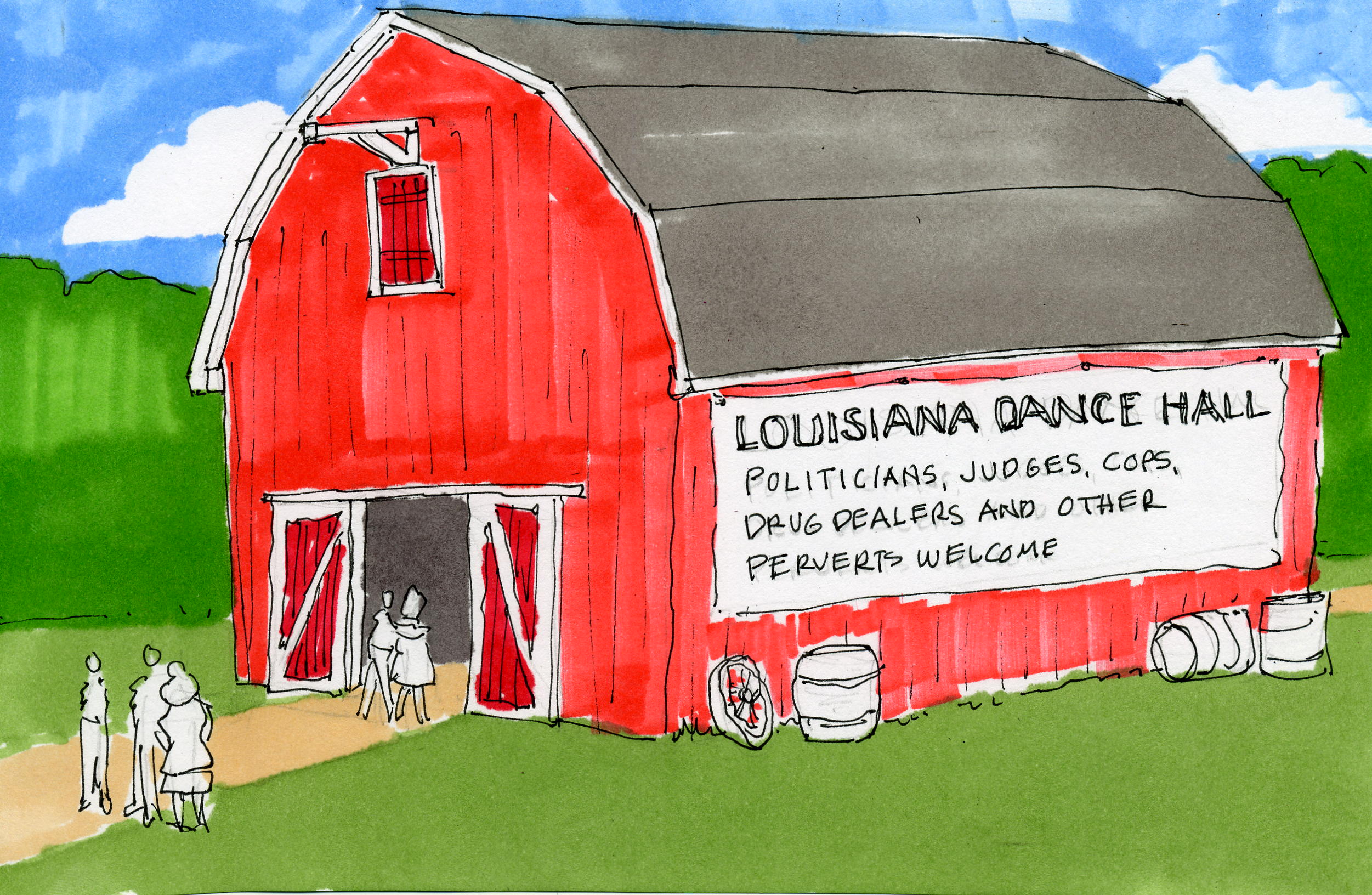 Ode to the Louisiana RagGrab onto your partner and “Dosie-do” Could be a girl but it’s too soon to know With sweet perfume its hard to resist her Don’t matter at all, if it’s your cute little sister Your father’s doin’ time, too bad, what a drag Your mamma’s still beatin’ to the Louisiana Rag Swing her to the right, now let’s twist and shout Cajun cocaine gets us high, swim like a fresh pickled trout Now turn her to the left, tonight a gift of red roses Tomorrow to the lab, evaluate your chronic cirrhosis Models and pimps, an athlete or a fag Nobody’s turned away, at the Louisiana Rag A good time for all, so don’t be a cynic After all we just met, at the S.T.D. Clinic Syphilis still positive? I demand a re-test! I gave up on the sheep, and cut down on incest! My strength is certainly waning, my reflexes startin’ to lag A couple of years too many, dancin’ the Louisiana Rag Here comes the moral Governor, as high as a rocket Got your hard earned taxes in his Louisiana pocket See an honest four years, the chance is remote So kick off your shoes, and give him your vote He’s paid off the Mayor, another election in the bag He’s now doin’ the two-step to the Louisiana Rag The waitress little darlin’, a clone for Janet Reno Serving drinks for the Governor at his hi-tech casino Can’t find the books, the ledger’s well hid A few million in graft was the latest over-bid Now the Gov’s in prison, to the guards he can brag How he once wrote a verse, for the Louisiana Rag The cops too are dancin’, not a chance they will miss it Selling confiscated drugs, the best and most illicit See a fine Southern Belle, a precious little puddin’ With a mouth chewing tobacco and a handful of Qualuden Please come with your mistress, ok if you are stag Drug deals are sweeter, when done to the Louisiana Rag The judge knows the steps, he’s motivated and able He’s learned ‘em long ago, underneath the courtroom table Sippin’ on his moonshine, he’ll start each session with a holler He’s always in perfect rhythm, for another Louisiana dollar The next judge will be his son, a game of friendly family tag They all got filthy rich, playing the Louisiana Rag The dance is now over, it’s sure time for all to go Your date was your brother, (but your father don’t know) The mosquitoes are in formation, I feel like I’m on the equator The morning sun revealed, I just made love to an alligator My spirits are down, I’m mentally startin’ to sag I’m waiting patiently to recover from the Louisiana Rag Send this Whackocard to your friends! |