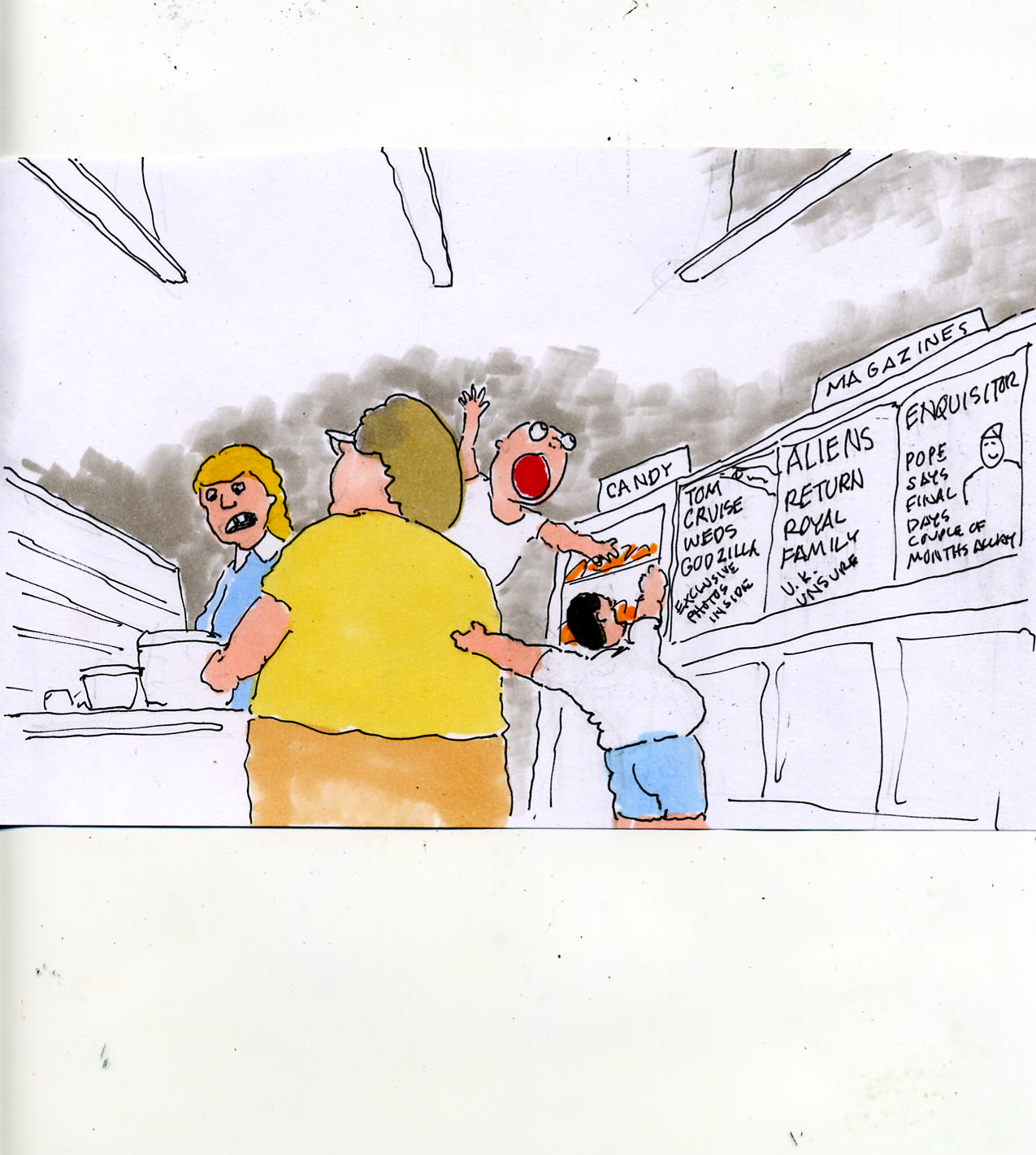 Thank You for the Bigmart StoreThank you for the Bigmart store , our culture is truly richa’ Find a T-shirt from Taiwan here, I’m sure that it won’t fit ya Save up valuable vacation days, find spare time in hand Visit the local Bigmart store, my private Disneyland Bigmart stores today, represent the modern trend Suffocate for hours, on return lines that never end Beautiful pine trees, sadly, got in progress’s way Replaced by a Bigmart sign saying, “Big Sale Today!” 10% off on imported, Asian underwear Need extra large?, Go out and buy an extra pair Bigmart is not just a simple, fleeting passing fad Wear Bigmart slippers, the Koreans will be glad Wear cool studs and look, dapper, trim and proper Hold your head up high, yer now a Bigmart shopper Be an avid subscriber to the “Bigmart News” “Today is Sunday, I’m gonna put me on me Bigmart shoes” The Bigmart “Greeter” comes to ingratiate A tour of American Society is about to initiate A walk down the aisle, see freaks daily Have more fun than at Barnum & Bailey On aisle six, come join an AA meeting Around the corner, see a tattooed maiden breastfeeding See Charles Manson, a real dead ringer Bigmart is one audition, for the Show of Jerry Springer Fake Pakistan Persian Rugs or a freezer that won’t freeze Collect more coffee mugs from the laughing Chinese Gifts for the holidays, shoppers bound to make a fuss Everybody in the world now makes em’, everybody but us Inferior merchandise, handed down from another latitude Elevates the Federal deficit, from a surplus of ineptitude Imports constantly pour, all over our border We can’t even make, our own drinking water Bigmarts are considered a community blight But they pack em in early, and they’re opened all night Bigmarts still a national rage Though their workers never get past the minimal wage Opened on Christmas and Christmas Eve A true Bigmart fan just never wants to leave A Bigmart stroll, the excitement will never taper Especially coupon clipping from the local Sunday paper Save up for an X-Box or an imported Play Station Grab on to the joystick, of this sad debtor nation Baseball fun, an American July Fourth plan Wave your flag, that was made in Japan Christmas time in Bigmart, fancy presents to buy See latest sordid treasures, from the sweatshops in Shanghai Gifts for Grandma, don’t forget your favorite care giver Impress them with crap, floated down from the Yangtze River CEO is clapping, Bigmart stock on the rise The Chinese are bowing, with Yankee dollars in their eyes “God Bless the Yuen”, Federal Banks always in the red Joke’s on the Bigmart shopper, “Tax em’ till they are dead” Mexican Pink Flamingos, decorate your own front yard You can charge them altogether, on your Bigmart card Buy beer and chips, add to the size of your pants Then pay it all off, with your entitled, government food stamps “Bigmart Health Cola”, I think I will drink it Stare at the display, made of worthless foreign trinkets On the checkout line read the latest Hollywood sin Then schmooze with the cashier with the toothless grin Shopping now concluded in the Bigmart store Adventure sure to follow, exit the Bigmart door The “Greeter” says politely, “Come back, forget me not” See you ripped off new car bumper, in the Bigmart parking lot It’s been a Bigmart day, now I have to stop It’s mentally exhausting, but it’s my only way to shop I need a tank of oxygen, it’s hard for me to speak Must save some cash, I’ll be back to Bigmart next week Send this Whackocard to your friends! |