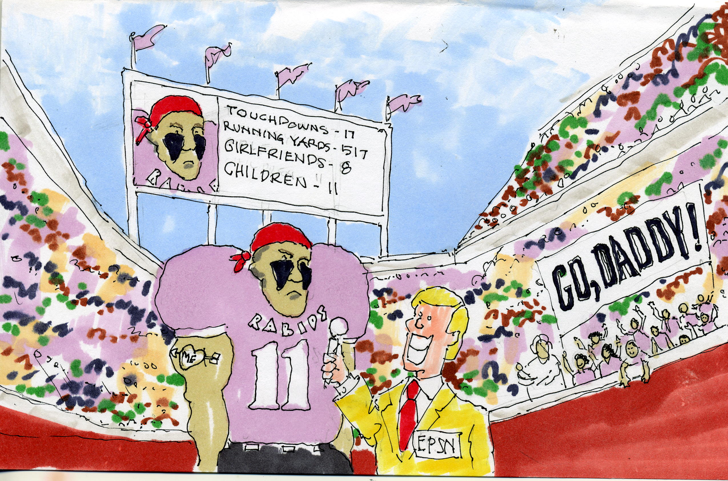 Thank You for Deadbeat Father’s DayAnother June- it’s DEADBEAT Father’s Day For my dad, he deserves a special, loving treat The scoreboard pronounces my love on display Today, he is a special, hi-scoring, DEADBEAT The woman constantly rush to adore The universe revolves around my famous, idolized pop My brothers and sisters are unaccounted for Dad’s points on the scoreboard, never seem to stop He has re-defined the definition of a running back It’s life’s game that matters to him most Another young fan, to join him in the sack He knows his way, between the coveted goal posts He tackles his problems with millions in cash For his amusement, a million well spent Nine months later, results in another ten yard splash But his children, will never see a red cent He claims the headlines, on the front page He is never seen, wearing an ominous frown On the field as well, he’s a fantasy team rage With the women, another easy, touchdown The women will attempt, a valiant goal line stance The refs, will throw the yellow penalty flag Its only five yards, to get into their pants A friendly game, of stimulating tag His children can easily fill the stands With a microphone, he is everybody’s best friend Always in bounds, his shuffling feet always lands Watch him describe his conquests, on E.S.P.N. Another June, Another DEADBEAT Father’s Day Of my DEADBEAT dad, again I will dream On the Rabids, I hope one day too, I will play A football star, a DEADBEAT DAD, on the same team Send this Whackocard to your friends! |