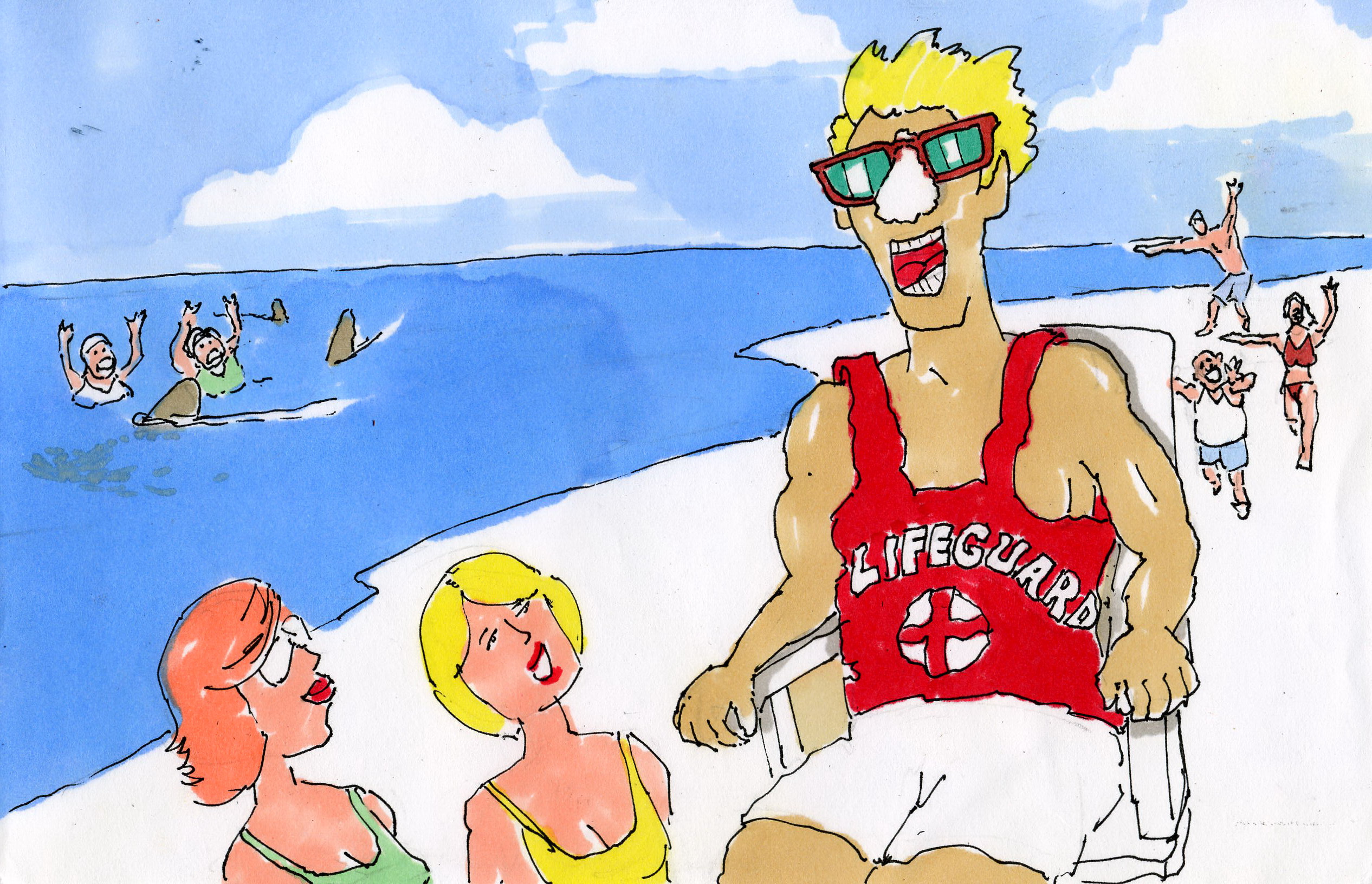Ode to a LifeguardOn a hot Summer’s day in July I am glad you are around Talking to the sexy girls in skimpy bikinis While letting the old ladies drown Listening to the New York Yanks Delicately putting zinc oxide on your nose Reading Sports Illustrated on your golden throne Oblivious while the high tide steadily rose Today was “Shark Infested Water” Sadly missing the message, you didn’t even have as hunch At high noon it was your scheduled break time Both you, and the shark, were having lunch While napping you missed the extensive lightening You missed the array of intensive lightening bolts You allowed the vacationers to keep swimming As they got zapped by a few thousand ocean volts Although I feel secure, seeing you in your lifeguard chair A loud whistle will keep me out of danger But next time in the water and I’m unable to swim Get on the phone, and please call the Lone Ranger Send this Whackocard to your friends! |