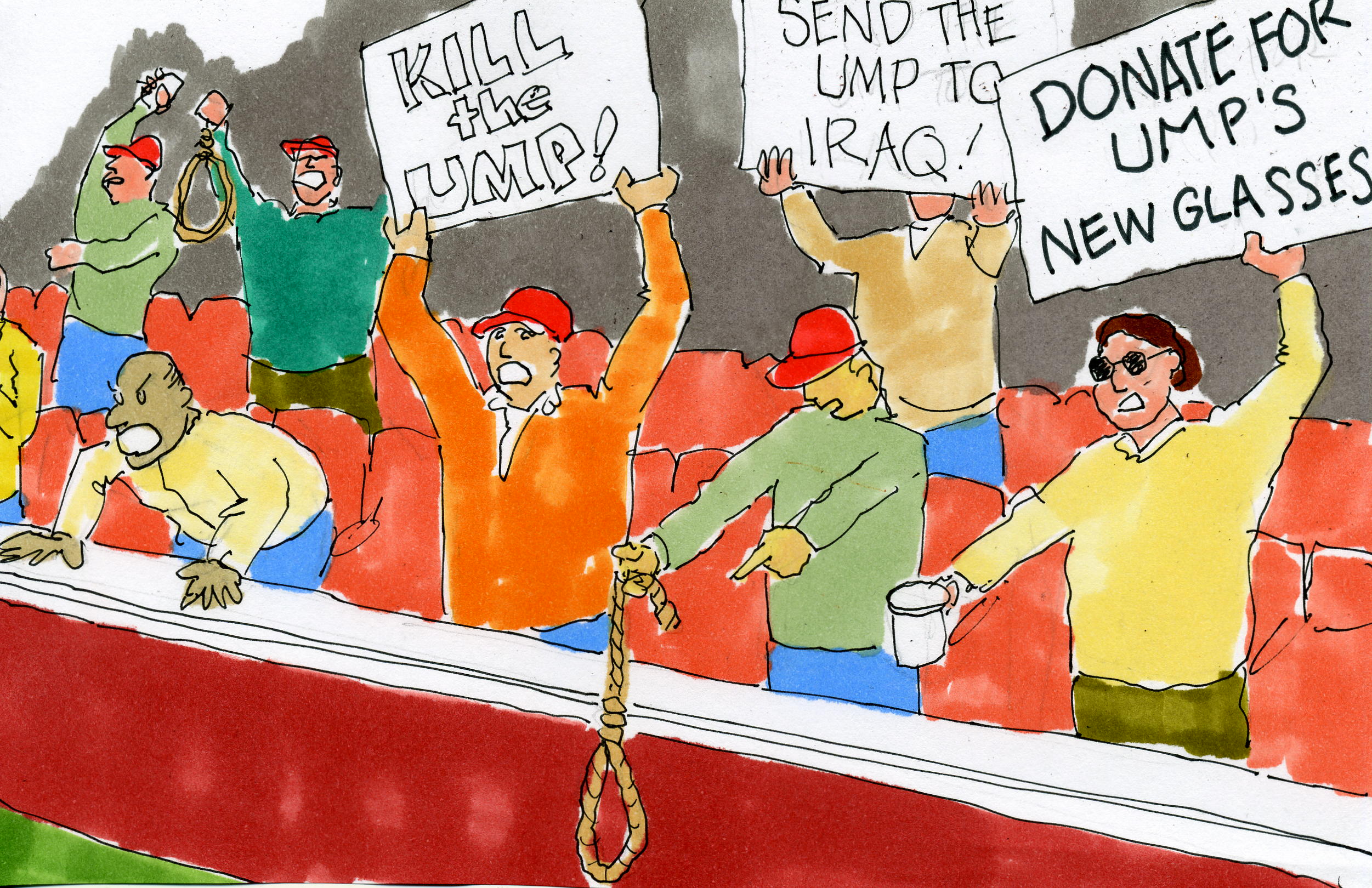 Ode to Sports RageIt’s one of life’s more painful lessons Reliving a dreamy childhood adolescence Let us rectify, an ancient, past historical, ill grievance You never earned your school’s sports letter Your kids are mandated to do much better Make yourself a hero, at your child’s inconvenience See their focused eyes hypnotically peeled Down on the competitive football field Their sons are always being cheered on center stage The fanatical fathers never blink Methodically pursuing the action on the ice skating rink Let’s all participate, in a friendly game, of deadly sports rage “My boy certainly got the goods To become the future Tiger Woods Don’t dare question his God-blessed natural inherited ability” So hand out the fancy flier “Let me present to you the next Mark McGuire” His only impediment is his father’s detrimental instability “Watch that insidious inside pitch You contemptuous asshole, you son of a bitch” “A blazing fastball, you better not ever, try to deliver” “Your call was obviously a few seconds too late My son was safe by miles, sliding in at home plate I’m going to rip that blind umpire’s opinionated, biased liver” “Hey ref you better get a quick wake-up I didn’t like at all that team’s aggressive wild lay-up” Say hello, to my hidden dormant, childhood neurosis I’m starting to get malignantly annoyed You can study it all in the books on Freud Sports has re-activated, my transient terminal, latent psychosis “Your blown call was simply horrendous I’m now forced to shoot out your appendix” My son’s coach was strictly warned not to budge Just a little parental vanity I’ll quickly plead a little temporary insanity I’ll just have to convince my fishing buddy, the State Judge So please bite your upper lip It’s called today “Modern Sportsmanship” We’ve done our pleasant society, one big eternal, lasting favor Rappers and cuddly football felons The current hero images now that advertisers are sellin’ It justifies, today’s sick, pathological, demented behavior Send this Whackocard to your friends! |